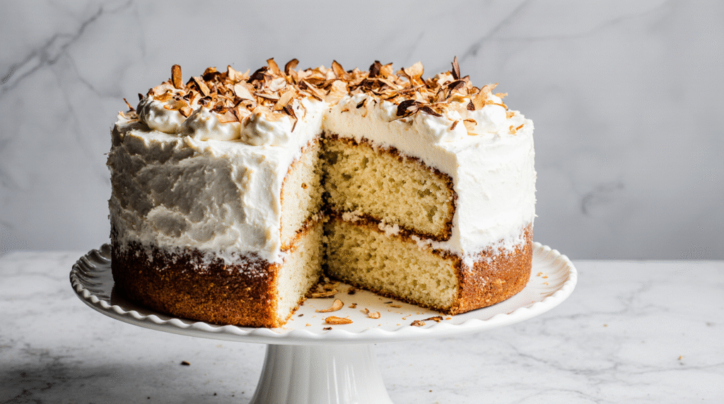 A handful of toasted coconut elevates flavor, aroma, and presentation—essential for dessert bliss baking and making your perfect coconut cream cake look bakery-level.